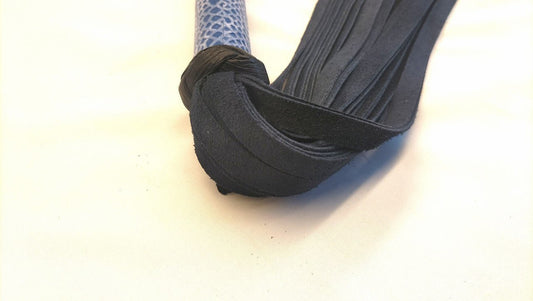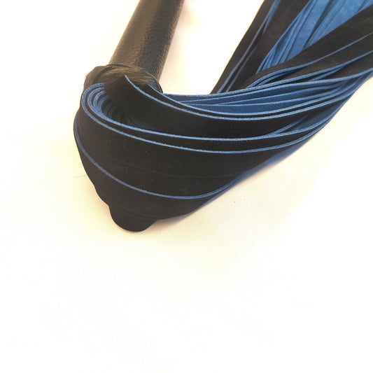 Zwart/blauw suède Flogger 500g - 36 Falls 50cm 2mm Dik Handgemaakt België