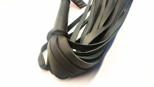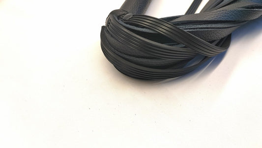 Zwart Leder Flogger met Rubber Falls – Handgemaakt Impact Play