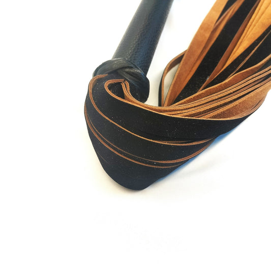 Zwart/cognac suède Flogger 500g - 36 Falls 50cm 2mm Dik Handgemaakt België