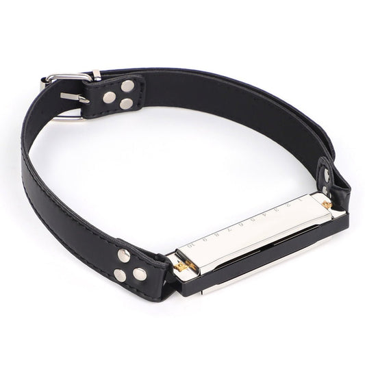Mondharmonica gag met strap (keuze uit zilver of goud)