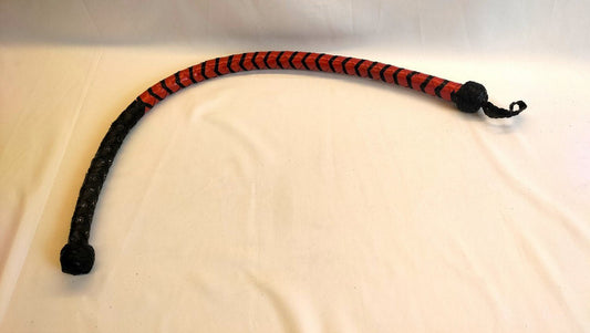 Rood/zwart gevlochten lederen cane zweep