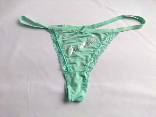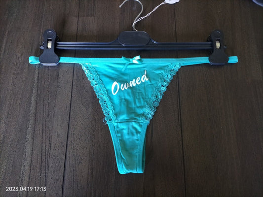 BDSM String 'Owned' Zilver - Fetish Lingerie Groen/Roze/Antraciet