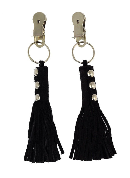 Tepelklemmen met Zweepjes Zwart - Venijnig Metaal Suede Leer BDSM