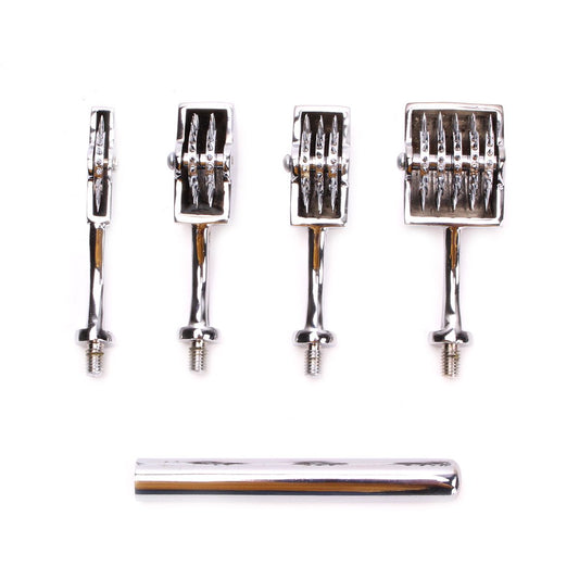 Onze pinwheels collectie bevat verschillende varianten: van single wheel tot triple, 5, 7 en zelfs 10 wieltjes. Elke wartenberg wheel is gemaakt van hoogwaardig materiaal zoals RVS of gepolijst staal voor hygiënisch en veilig gebruik. De scherpe pinnetjes stimuleren de zenuwuiteinden zonder de huid te beschadigen - ideaal voor sensatie speelgoed liefhebbers en prikkelend BDSM play.