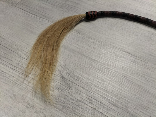 Snake Whip Zwart Rood 105cm met Blond Koeienhaar - Unieke Bullwhip
