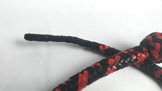 Rood/zwart gevlochten lederen zweep 90 cm (cracker loos)